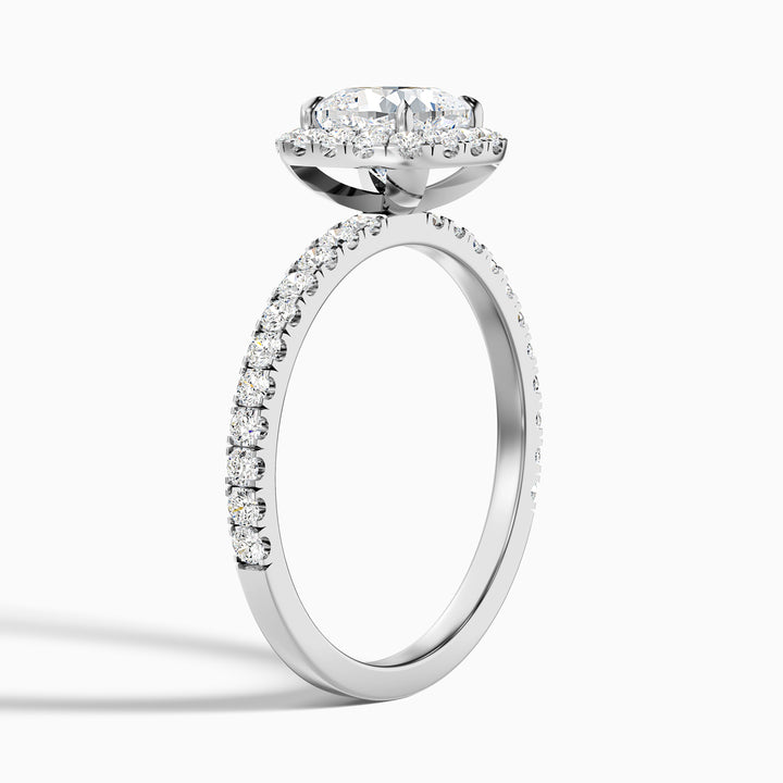 June 2.5 Carat Cushion Cut Halo Pave Lab Grown Diamond Ring in 14k White Gold