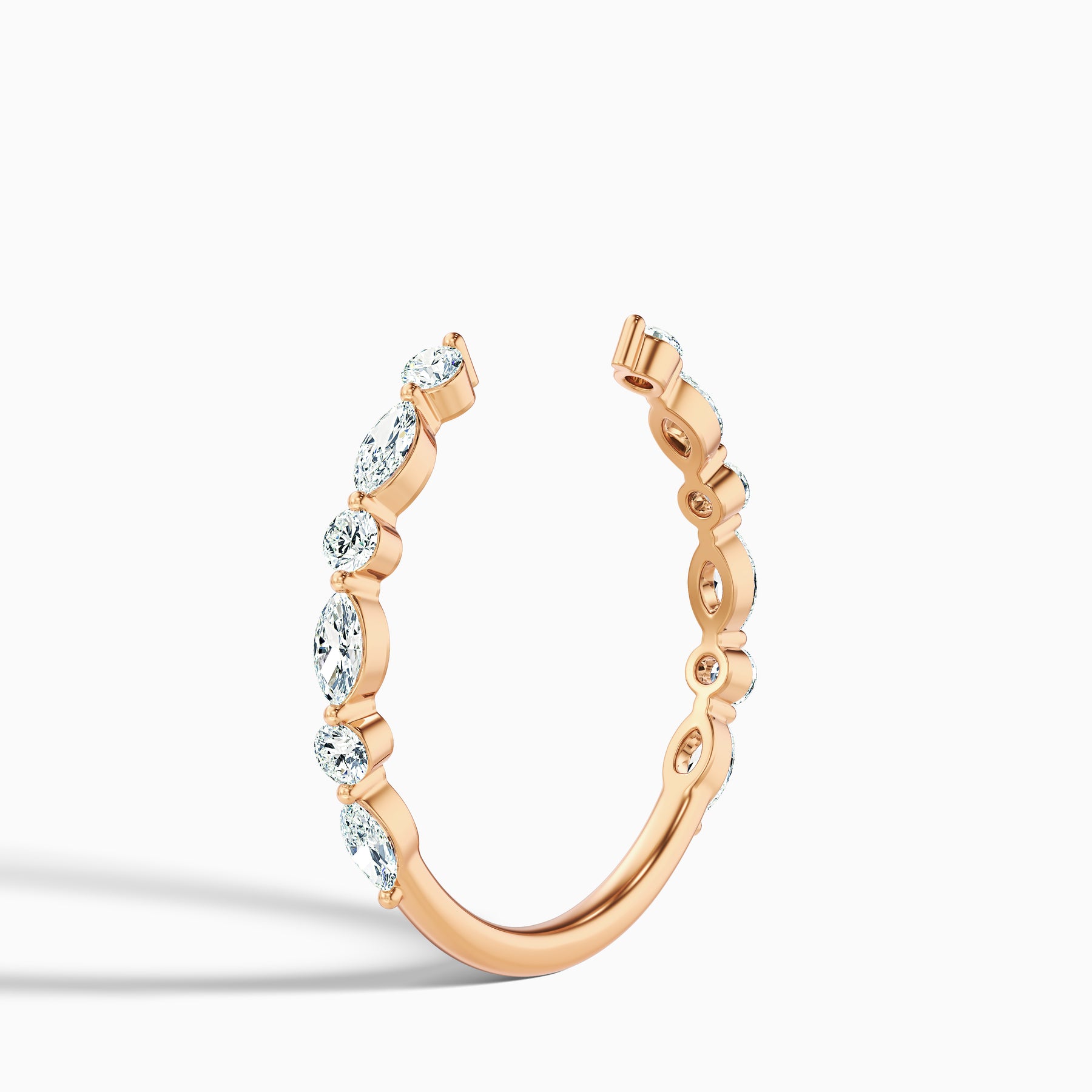 The Kailey Open Marquise and Round Cut Lab Grown Diamond Wedding Band blends elegance with modern design, featuring alternating marquise and round lab-grown diamonds set in a sleek open style. Crafted in fine metal, this sustainable wedding band sparkles with brilliance and makes a perfect choice for weddings, anniversaries, or stacking with your engagement ring.