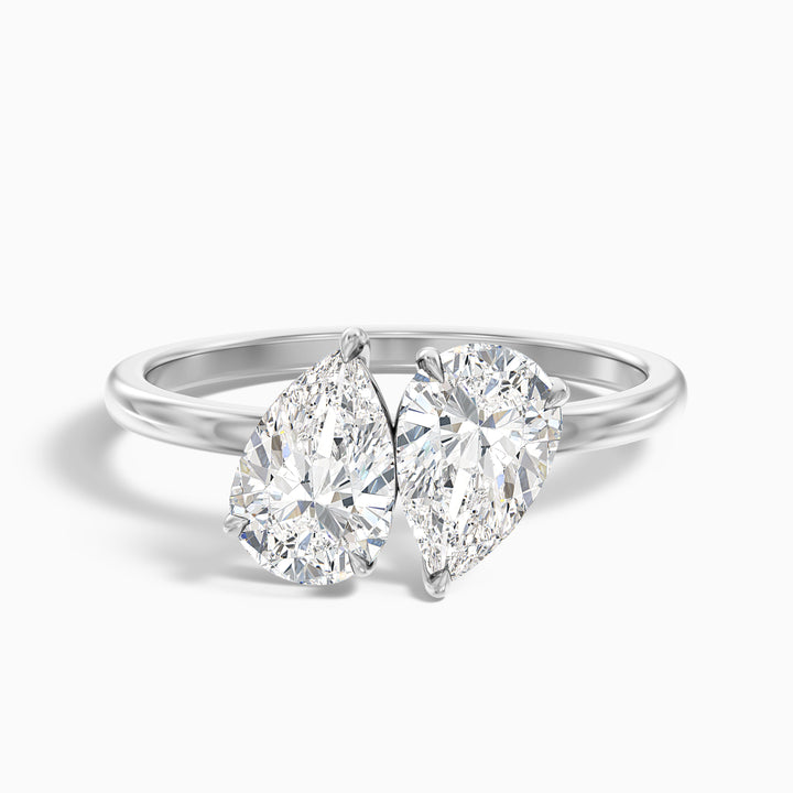Kate 2.5 carat with both pear toi et moi ring in moissanite diamond is a sophisticated toi et moi diamond ring made from 18k rose gold. The soft hue of the band enhances the sparkle of the stones, while the total carat weight of 2.5 carat ensures a brilliant shine.