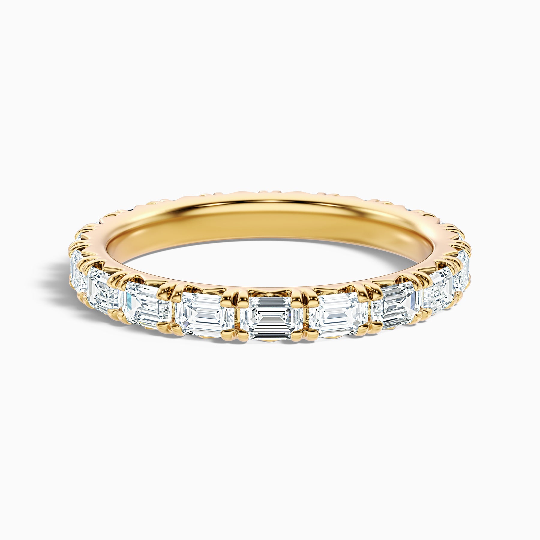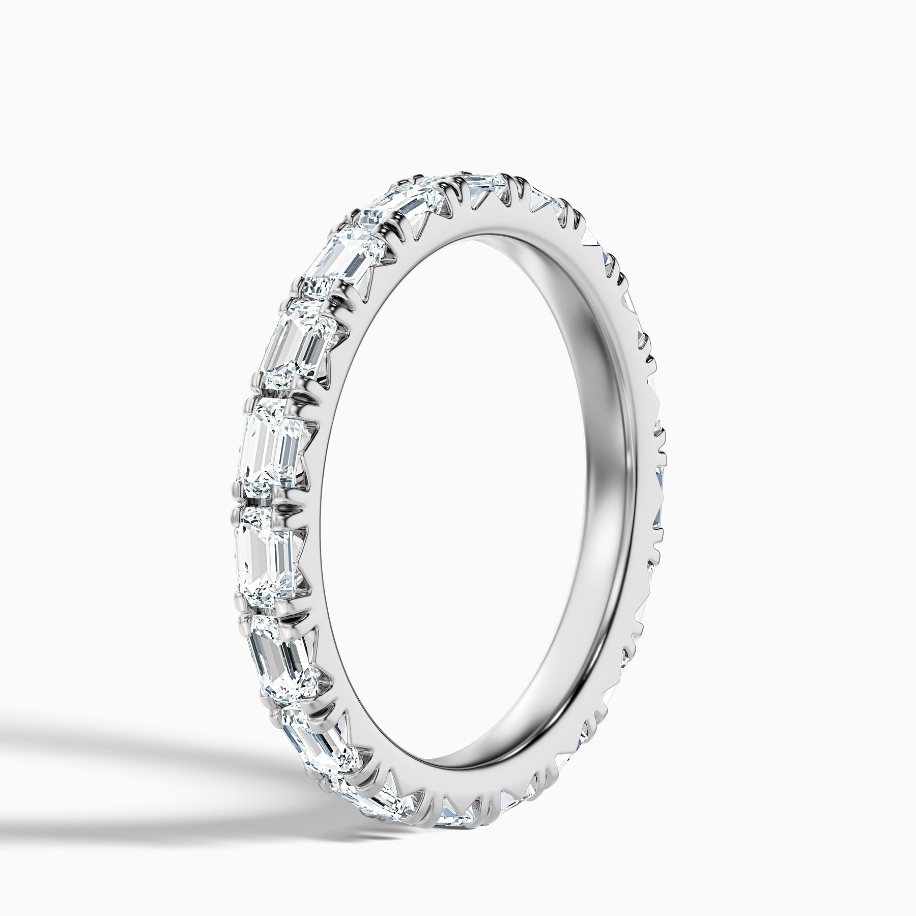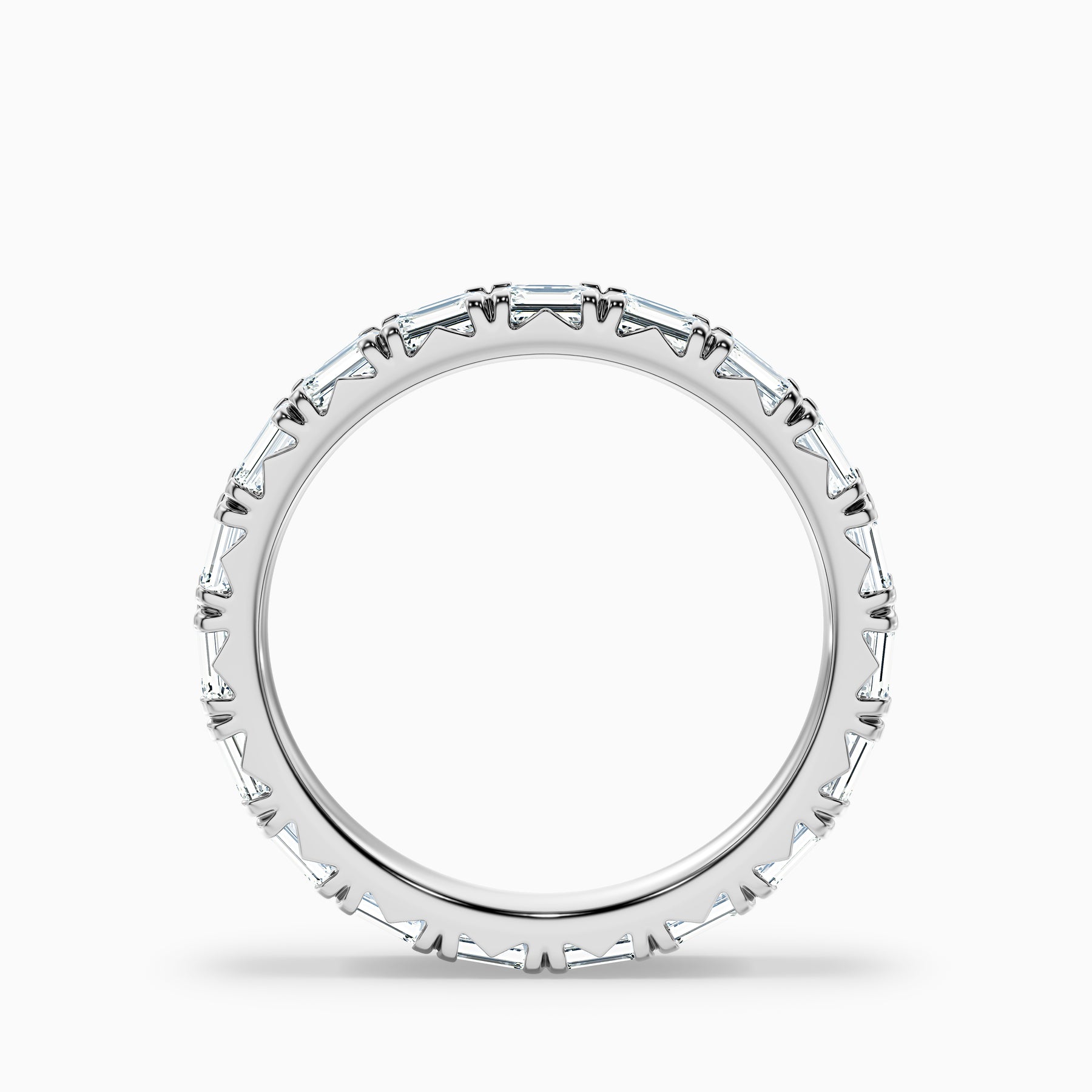 The Keziah Emerald Cut Full Eternity Lab Grown Diamond Wedding Band features 18–25 emerald-cut diamonds set in a scalloped pavé design for a continuous, sparkling effect. With a 2.6 mm rhodium-plated band, it offers sleek elegance and lasting brilliance. Perfect as a wedding band, anniversary ring, or stacking piece, this ethically crafted eternity band combines modern style with sustainable luxury.