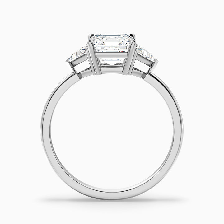 Kora 2.5 Carat Three Stone Asscher With Trillion Side Stones Moissanite Diamond Ring in 14k White Gold