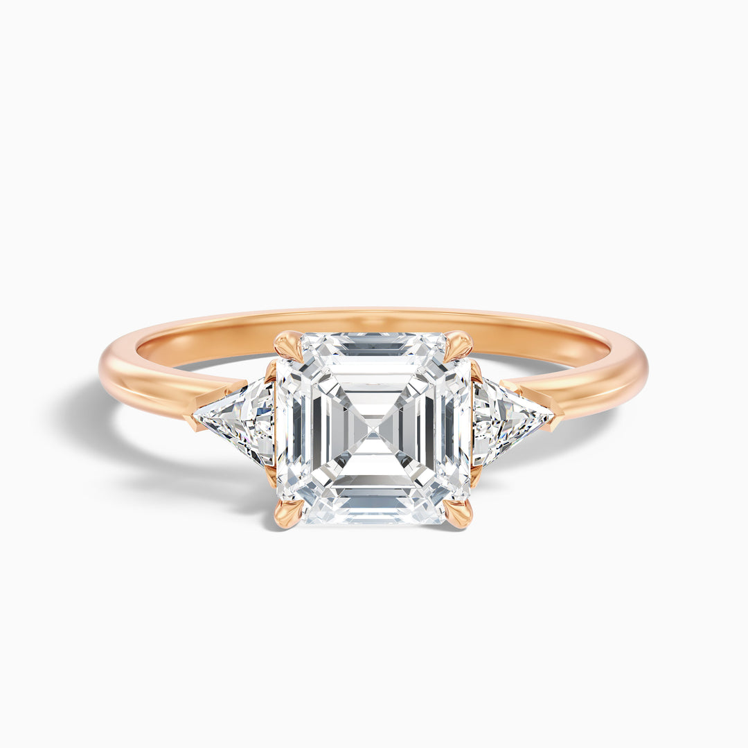 The kora three stone asscher with trillion side stones moissanite diamond ring captures the essence of timeless love and modern sensibility. With a radiant trio of diamonds, this ring tells a story — one stone for the past, one for the present, and one for the future. The brilliance is unmistakable, with a total 3.5 carat weight chosen to highlight sparkle without overwhelming the hand. Each stone is expertly cut, aligned, and set to ensure maximum light reflection from every angle.