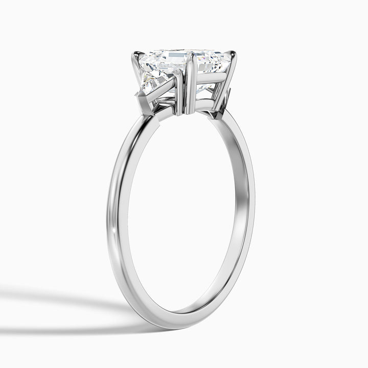 Kora 3 Carat Three Stone Asscher With Trillion Side Stones Moissanite Diamond Ring in 14k White Gold