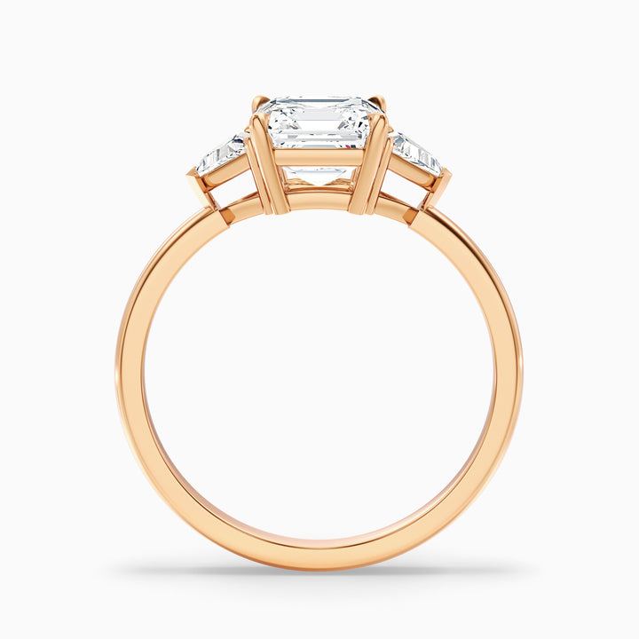 Kora 5 Carat Three Stone Asscher With Trillion Side Stones Moissanite Diamond Ring in 14k Rose Gold