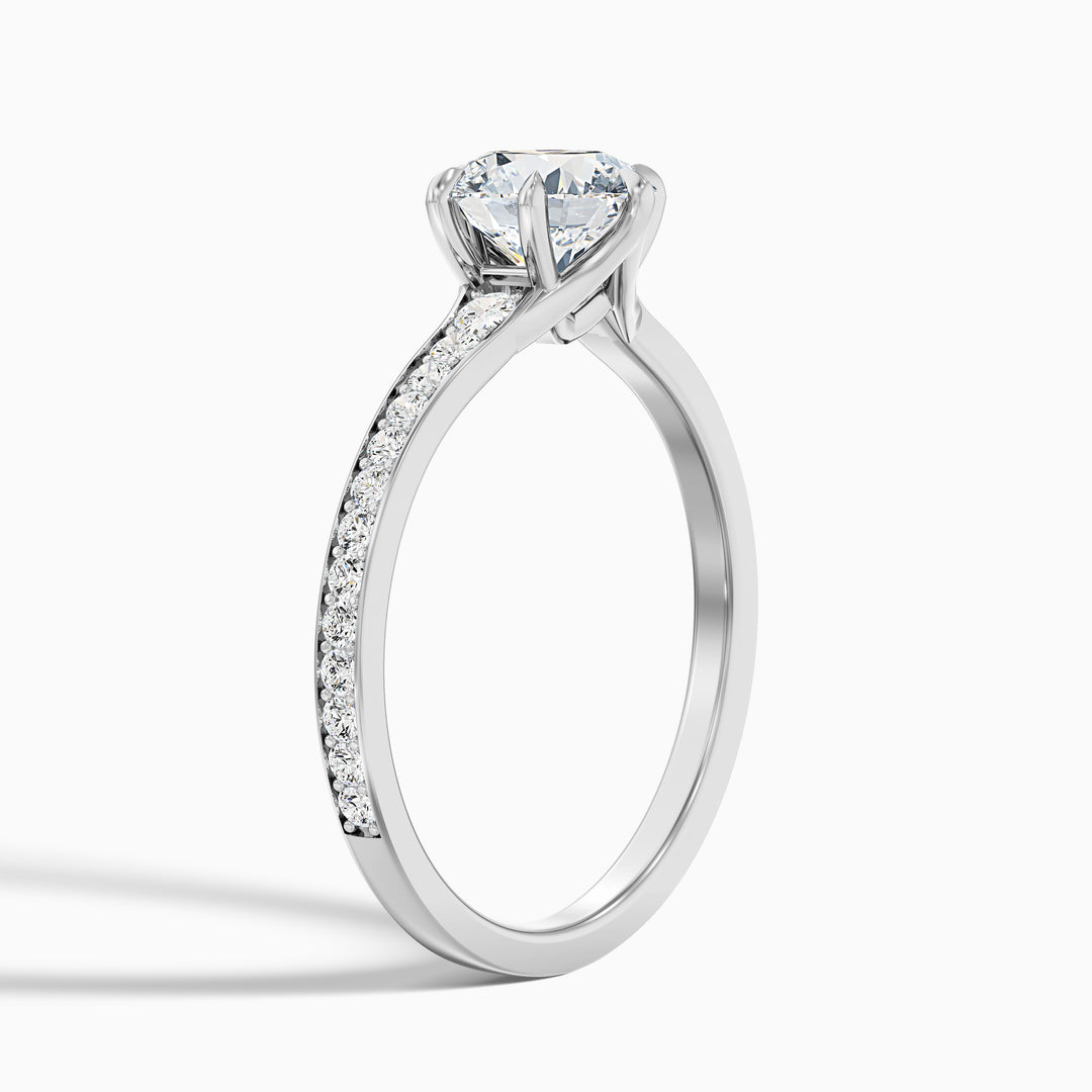 Experience the beauty of simplicity with the kyra 3.5 carat round side stone pave lab grown engagement ring. Featuring a 3.5 carat lab grown diamond set in a side stone design, it is a classic choice. The 10k yellow gold ring adds a touch of elegance and durability.