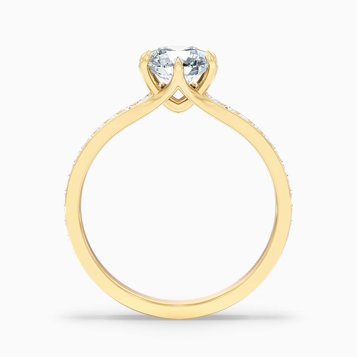 Radiate with the kyra 5 carat round side stone pave lab grown engagement ring. Featuring a 5 carat lab grown diamond set in a simple side stone design, it is a true classic. Made from 18k white gold, the ring is both stylish and sturdy.
