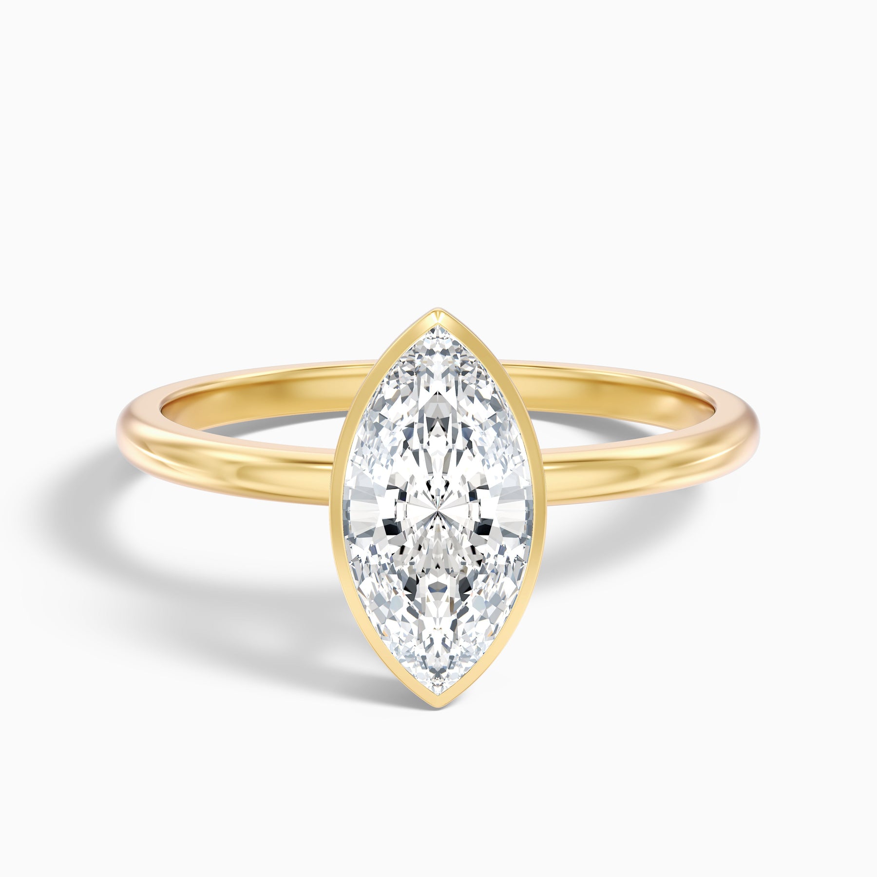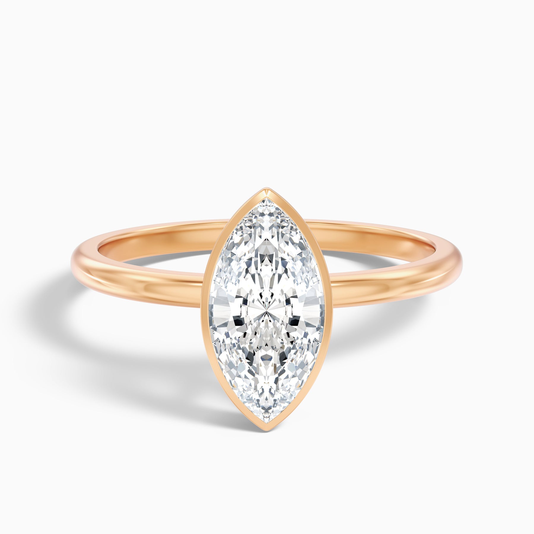 The leah marquise cut bezel set lab grown diamond ring offers a refined and sophisticated look with its stunning 2 carat marquise cut diamond set in a sleek bezel setting.