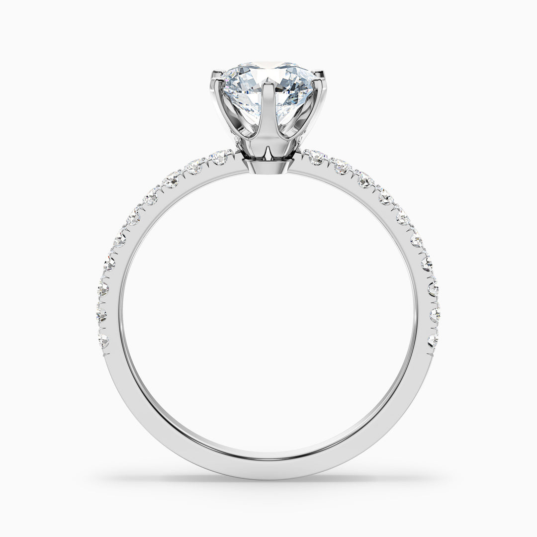 Lyra 1 Carat Round Side Stone Pave Moissanite Engagement Ring in 14k White Gold