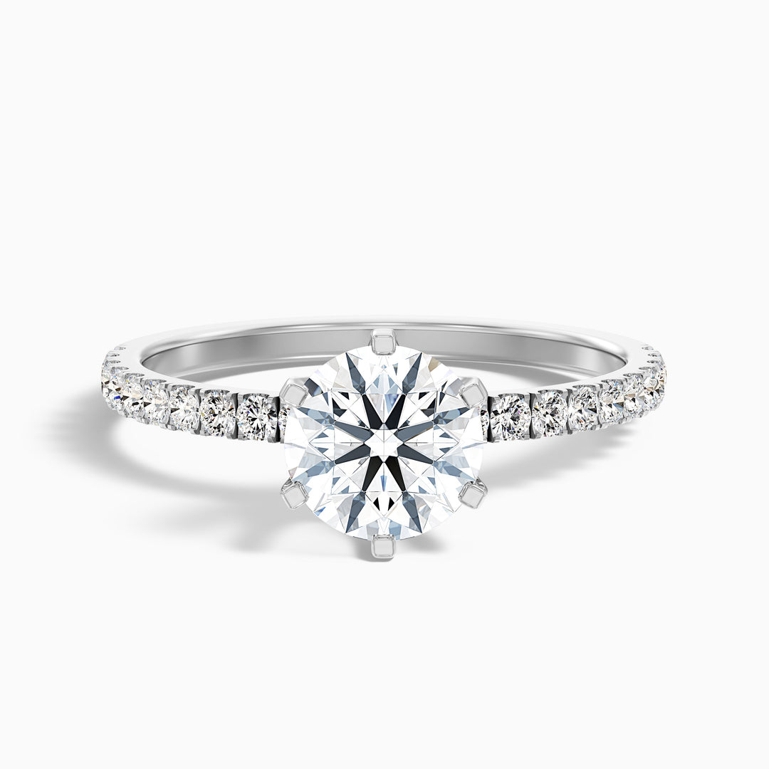 Lyra 2.5 Carat Round Side Stone Pave Moissanite Engagement Ring in 10k White Gold