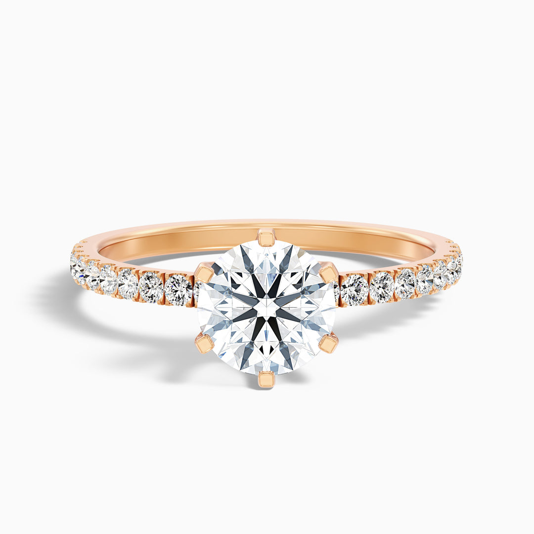 Lyra 2 Carat Round Side Stone Pave Moissanite Engagement Ring in 14k Rose Gold
