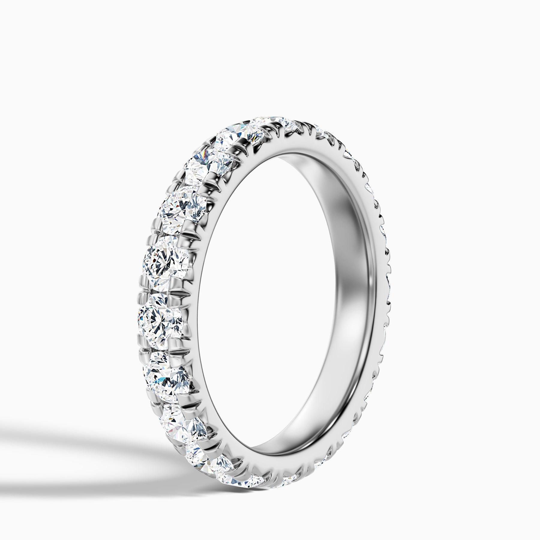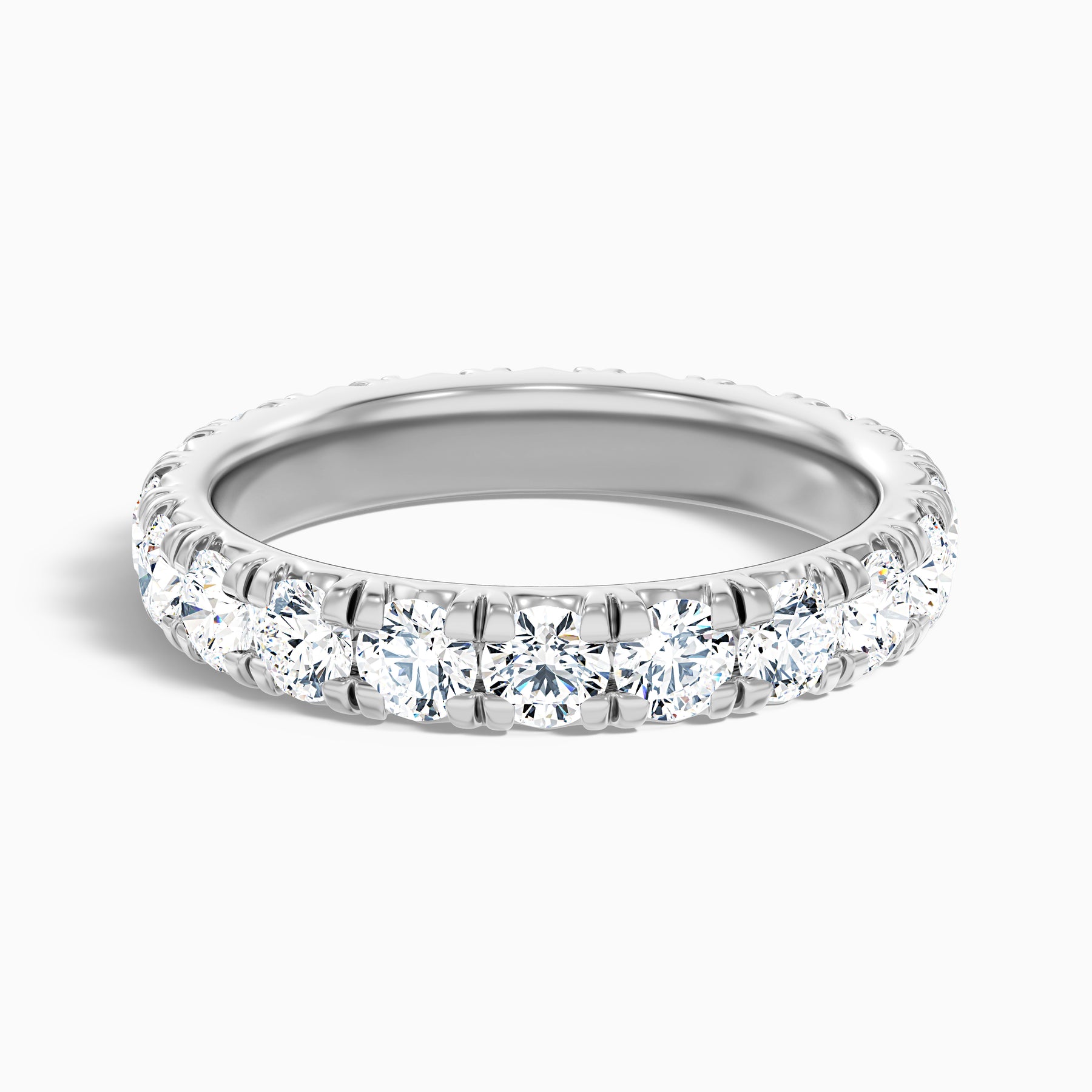 The Matilda French Pavé Round Cut Eternity Lab Grown Diamond Wedding Band showcases 18 - 25 round lab grown diamonds in a French pavé setting along the full band. With a total carat weight of 1.80 - 2.5 ct, this 3.5 mm band offers timeless sparkle and elegant design.