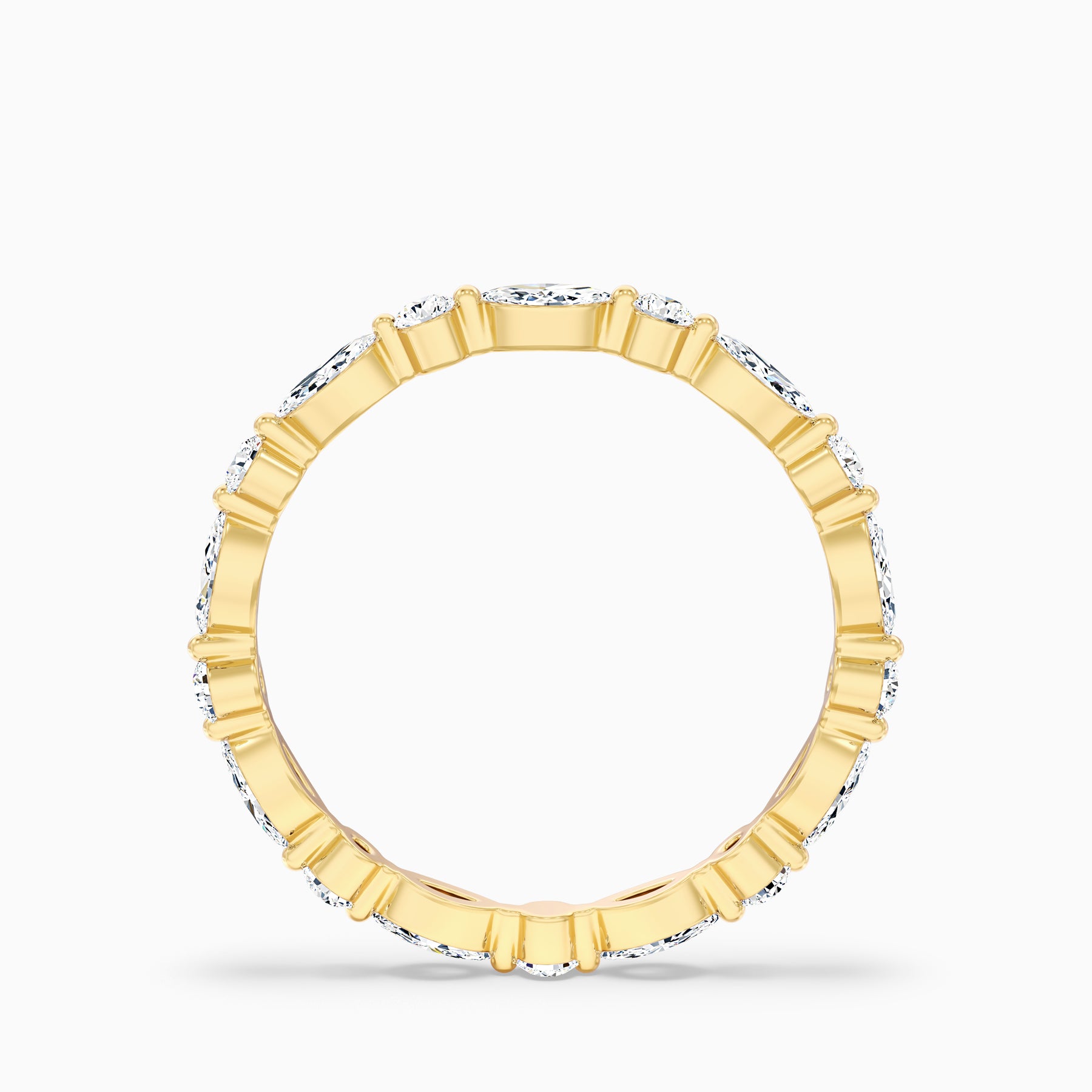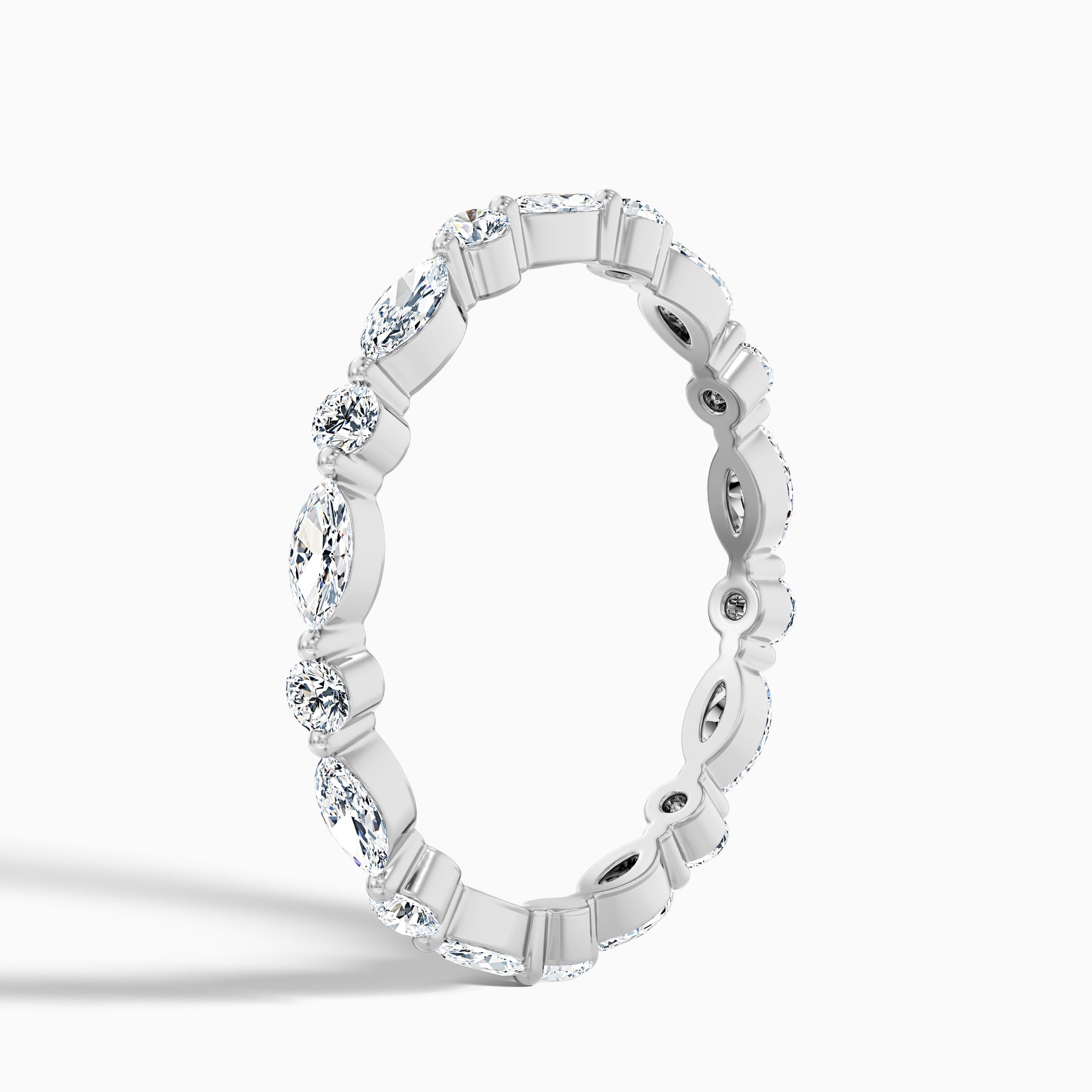 The Meryl Full Eternity Round and Marquise Cut Lab Grown Diamond Wedding Band combines alternating marquise and round diamonds in a shared prong setting for endless brilliance. Available in slim 1.5 mm and bold 3 mm widths, it’s a timeless symbol of love and elegance. Perfect as a wedding band, anniversary ring, or stacking piece, this band pairs sustainability with exceptional sparkle.