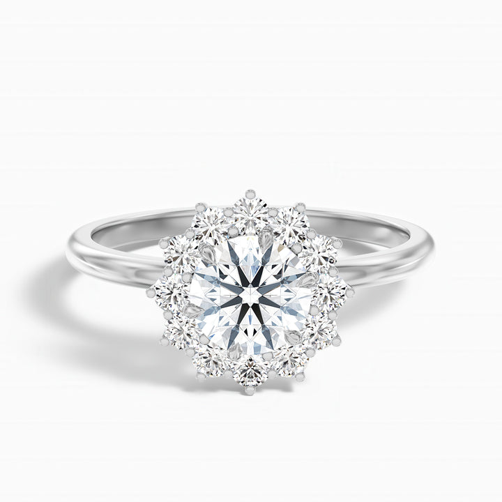Mila 2 Carat Round Cut Vintage Inspired Halo Lab Grown Diamond Ring in 18k White Gold