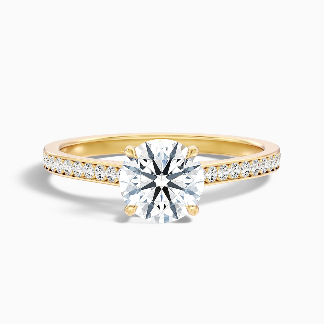 Make your love story shine with the mira 2 carat round side stone pave moissanite engagement ring. Featuring a dazzling 2 carat moissanite diamond in a side stone setting, it is a true classic. The 10k white gold ring offers a perfect balance of beauty and strength.