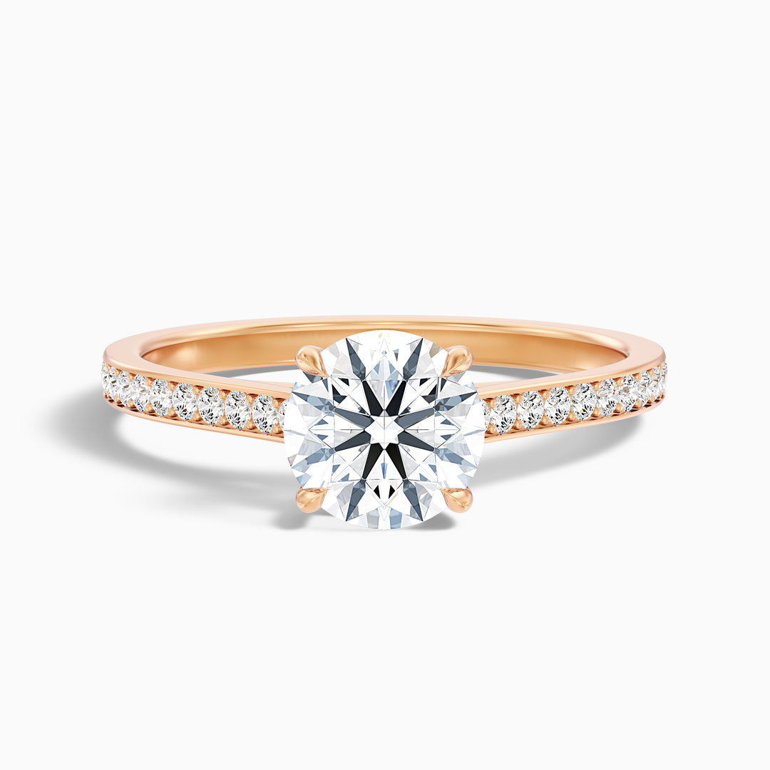 Celebrate your love with the mira 4.5 carat round side stone pave moissanite engagement ring. Featuring a 4.5 carat moissanite diamond in a side stone setting, it is a timeless piece. The 14k white gold ring adds elegance and durability, making it perfect for everyday wear.