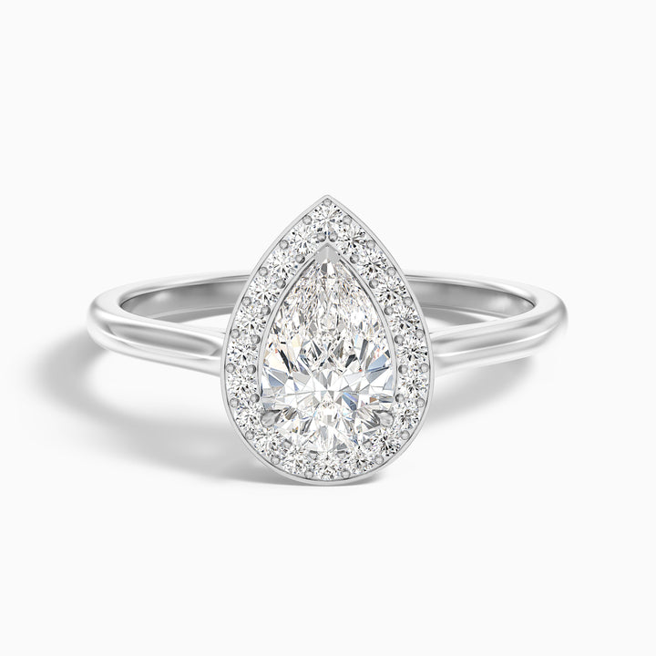 Nina 2 Carat Pear Halo Lab Grown Diamond Ring in 14k White Gold