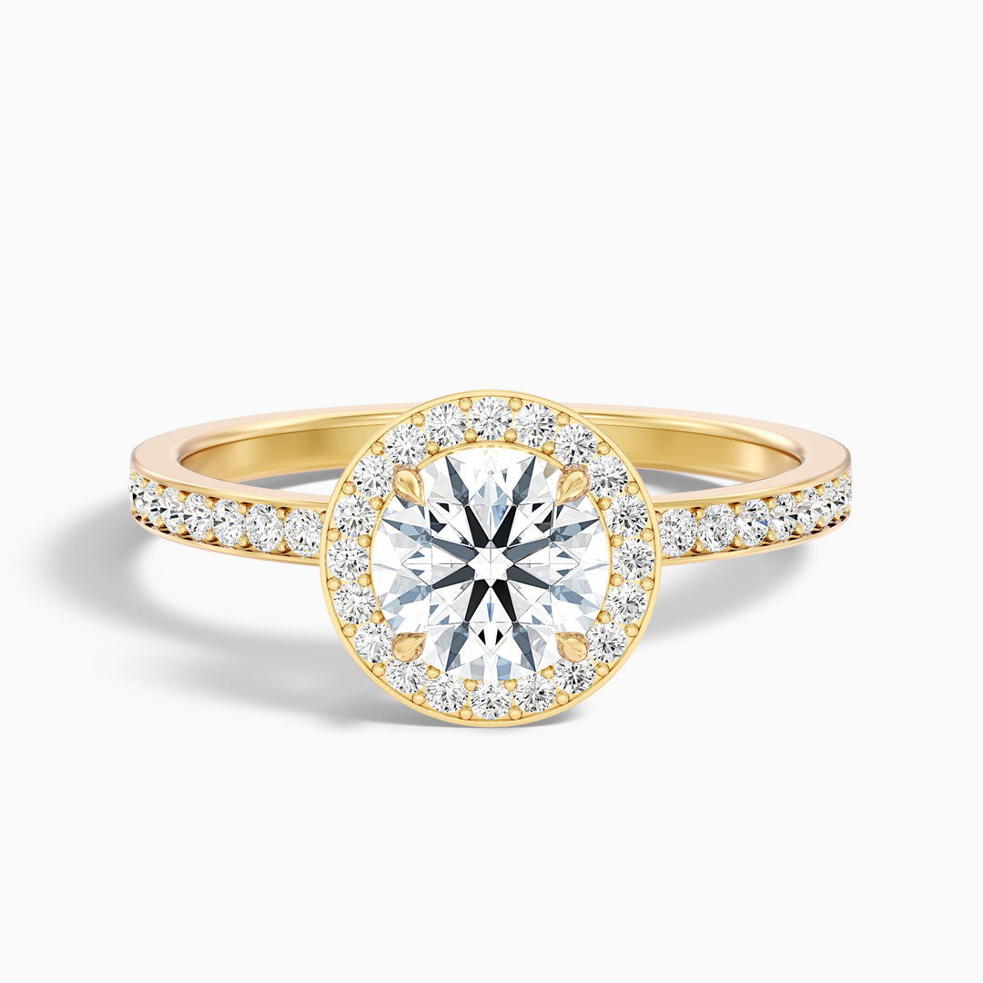 Nyra 1 Carat Round Halo Pave Moissanite Engagement Ring in 18k White Gold