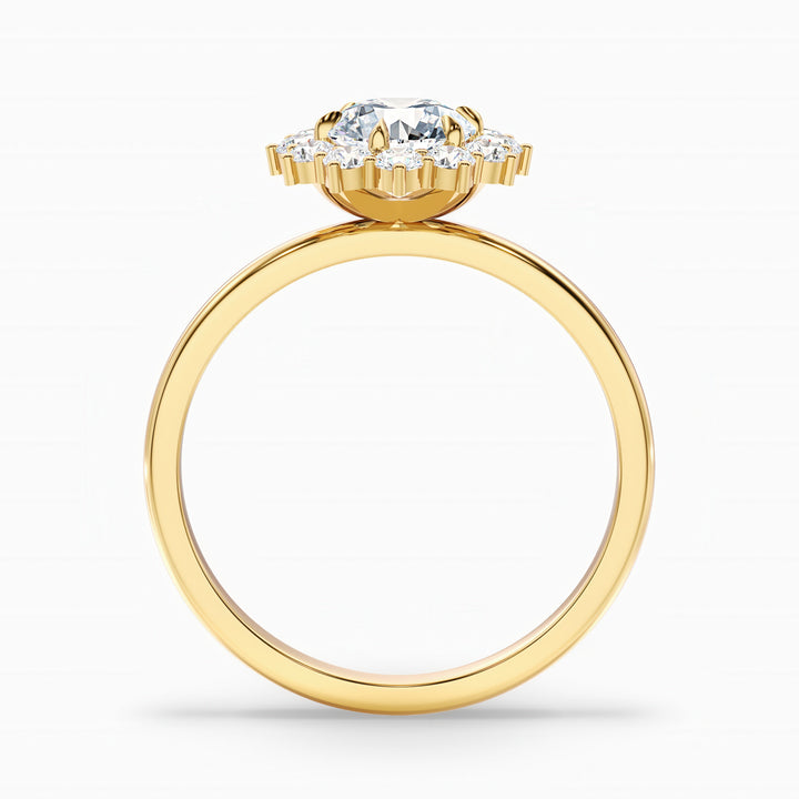 Ozie 3 Carat Round Cut Vintage Inspired Halo Moissanite Diamond Ring in 18k Yellow Gold