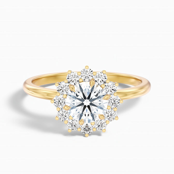 Make your love story shine with the ozie round cut vintage inspired halo moissanite diamond ring. Featuring a chic 4 carat moissanite diamond set in a trendy halo design, it's a real showstopper.