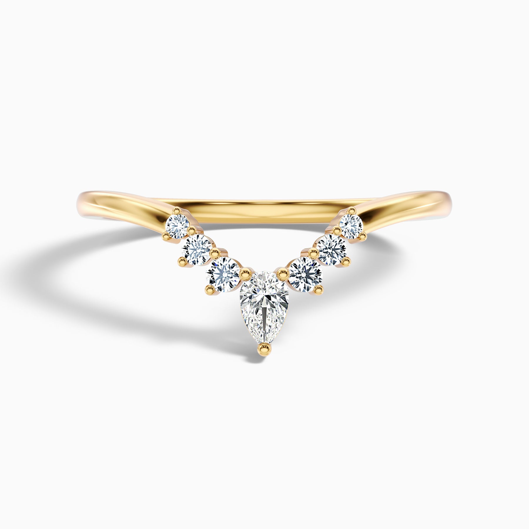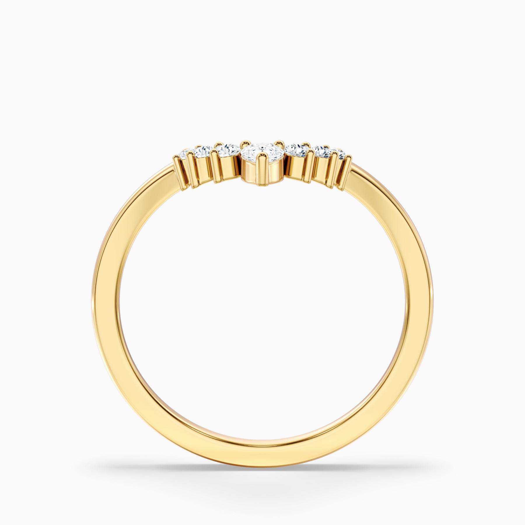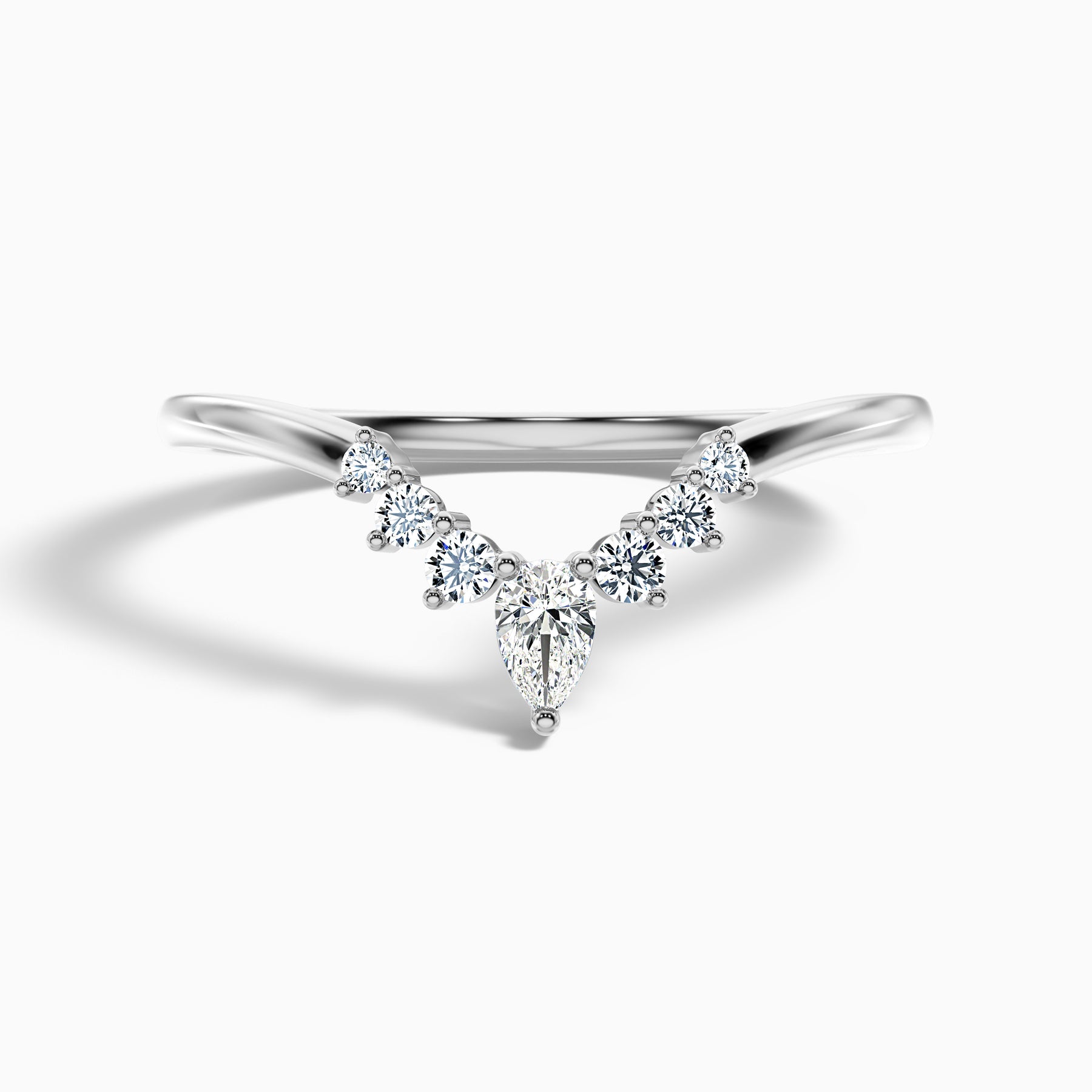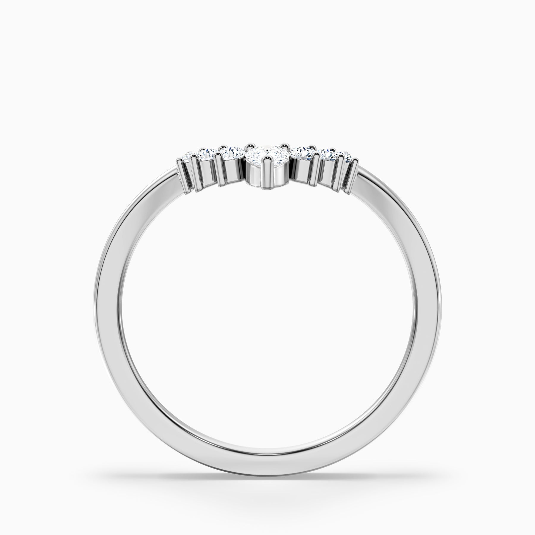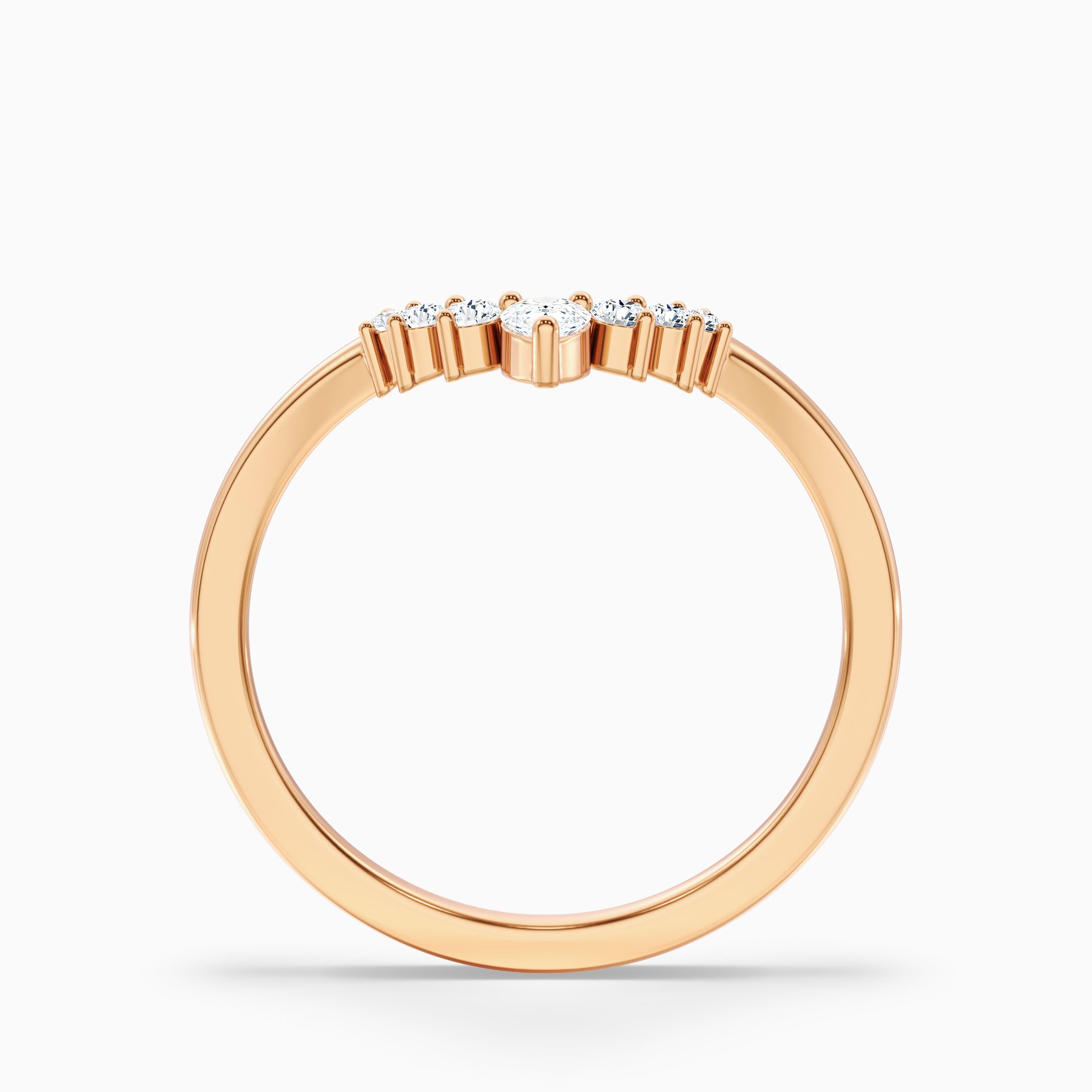 The Peony Round Cut Crescent Shaped Lab Grown Diamond Wedding Band blends timeless charm with a unique crescent silhouette. Featuring a sparkling mix of round and pear-shaped diamonds in shared prong or prong settings, this delicate 1.5 mm band delivers refined elegance. A perfect choice as a wedding band, stacking ring, or anniversary band, it offers sustainable sparkle with modern style.