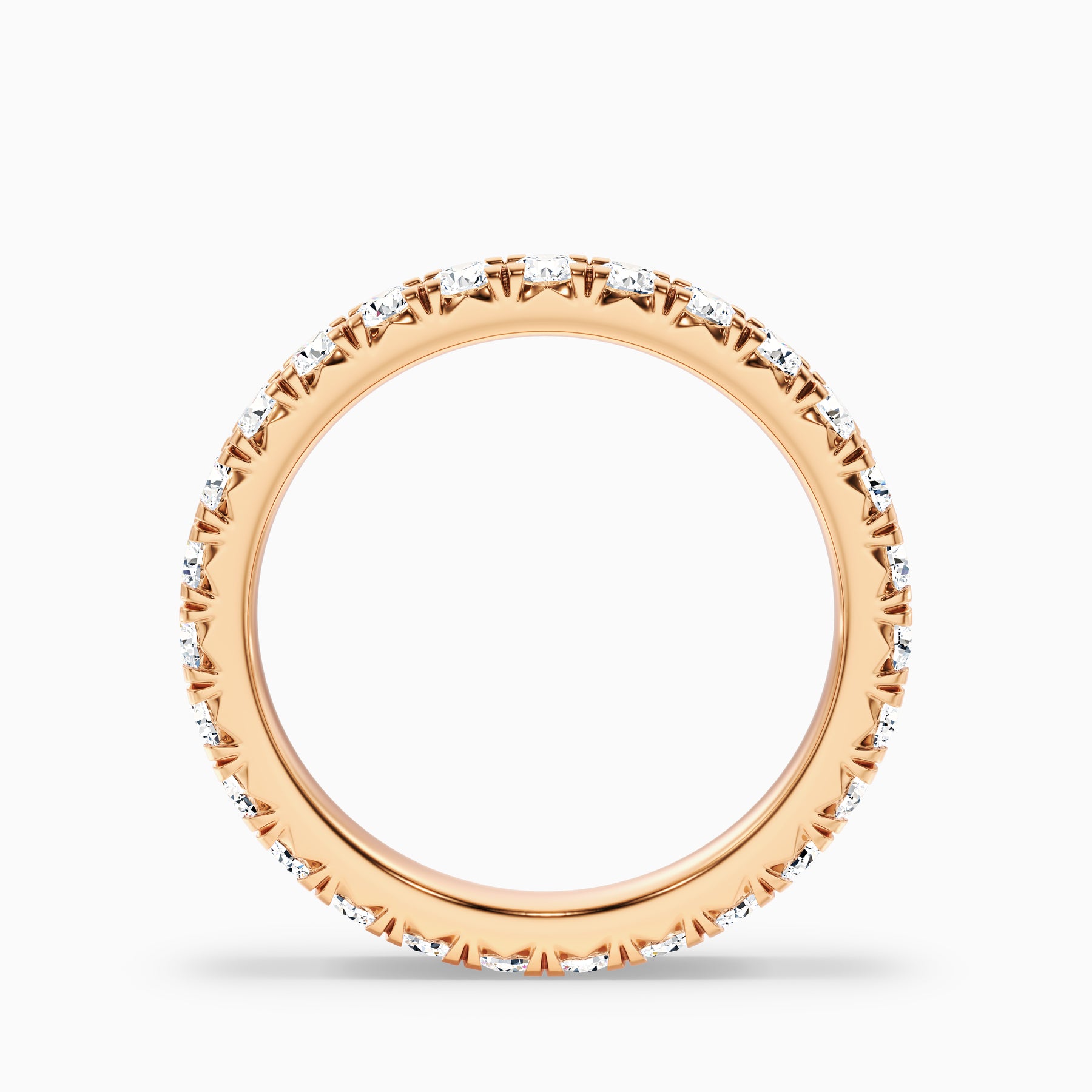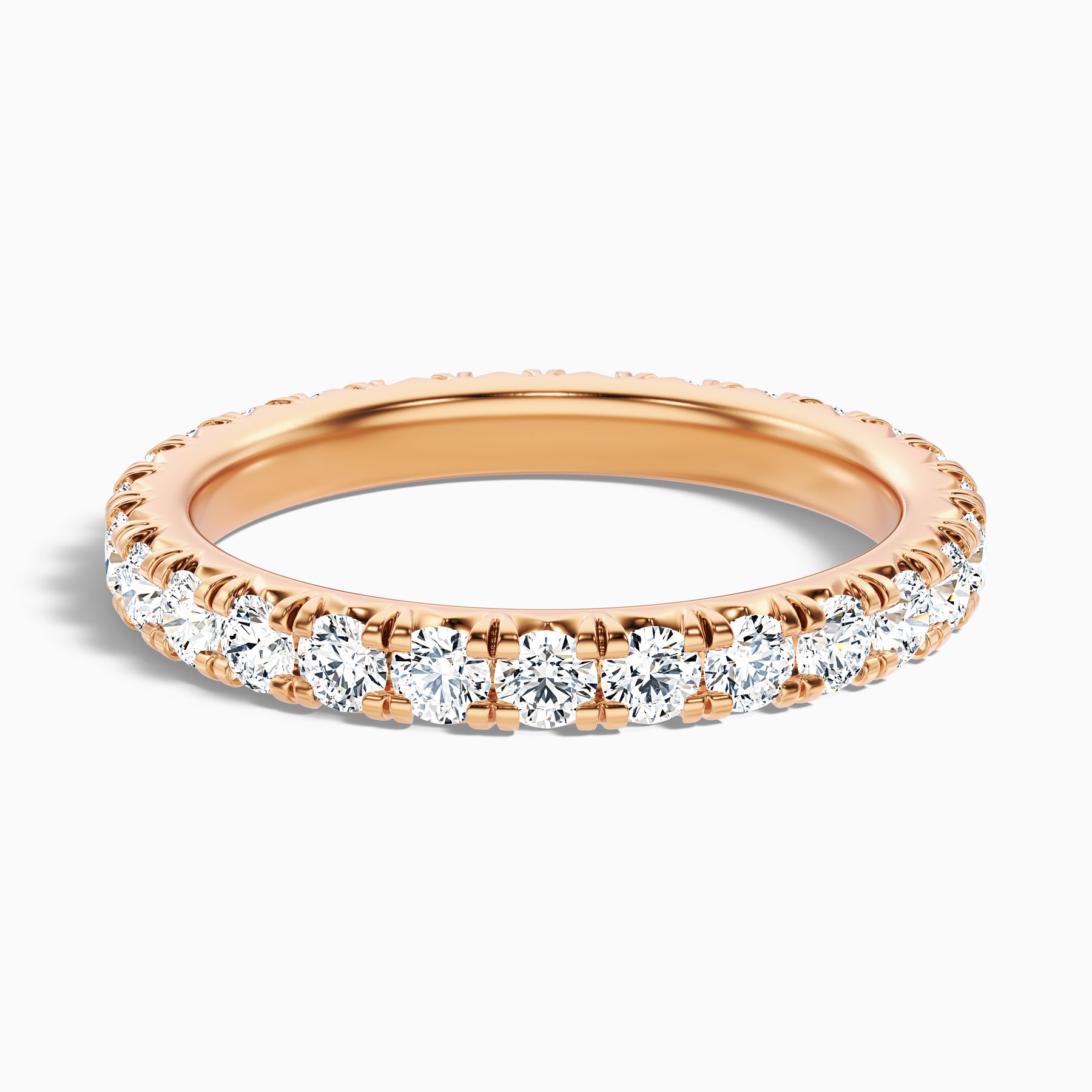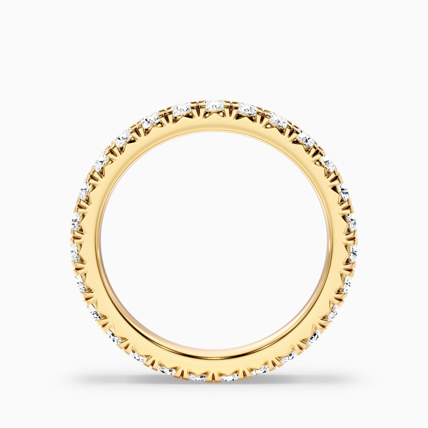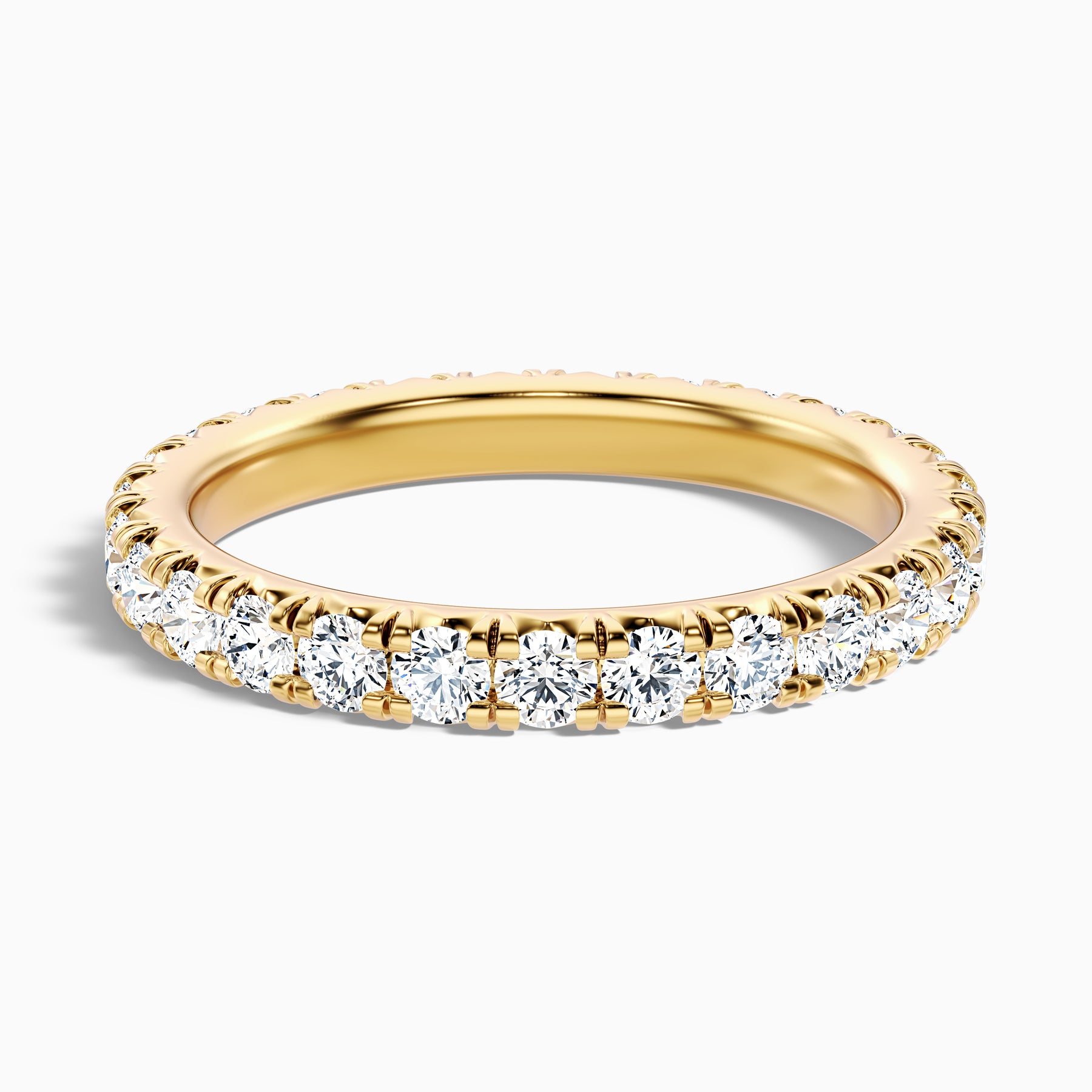 The Prisca Round Cut Eternity Lab Grown Diamond Wedding Band is available in multiple widths and carat weights, featuring French pavé-set diamonds that sparkle around the entire band. Crafted with sustainable lab grown diamonds, this eternity band offers timeless brilliance, making it a perfect choice for a wedding band, anniversary ring, or stackable statement piece.