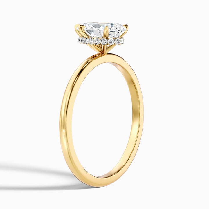 The qiana pear cut hidden halo moissanite diamond ring keeps the spotlight on a bright 2.5 carat diamond while adding a side detail that shines quietly. A row of small stones is placed under the setting to reflect light upward, creating a soft glow.