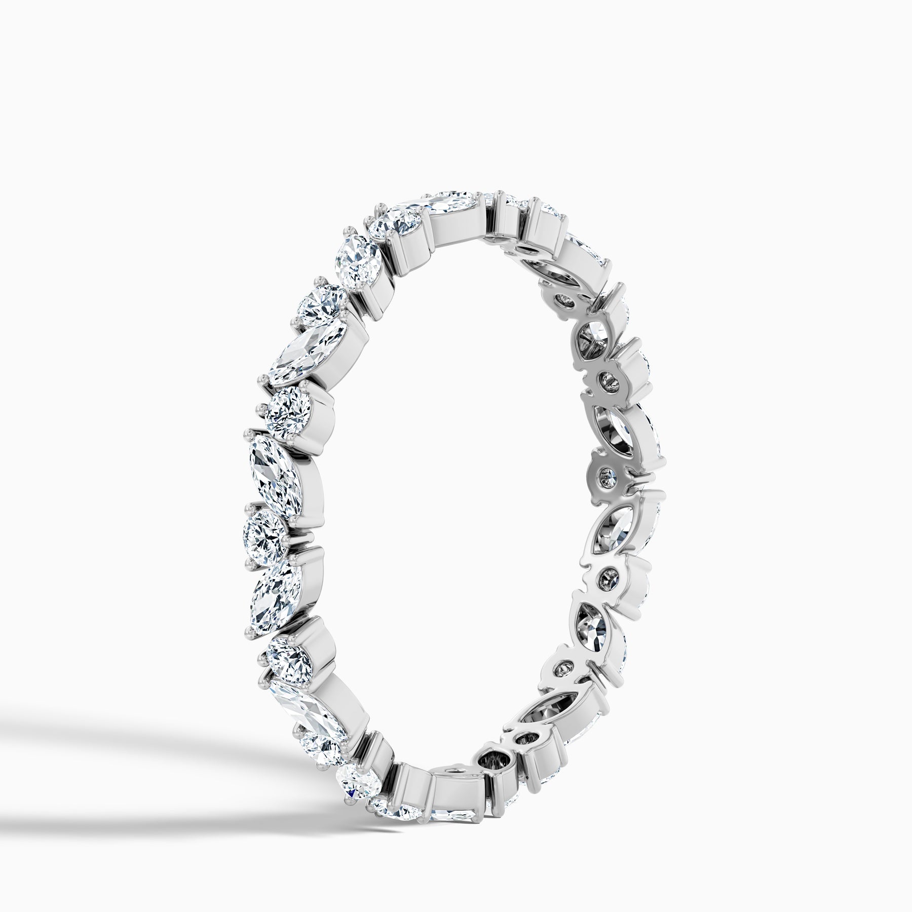 The Sylvara Marquise and Round Cut Cluster Lab Grown Diamond Wedding Band is a radiant design crafted for modern brides who want unique sparkle. Featuring a graceful mix of marquise and round cut lab grown diamonds, this band forms a dazzling cluster pattern that catches the light from every angle. With its refined profile and balanced brilliance, the Sylvara band is perfect for pairing with your engagement ring or wearing as a stylish standalone piece. The cluster setting enhances the brilliance of each diamond, while the smooth finish ensures comfort for everyday wear.