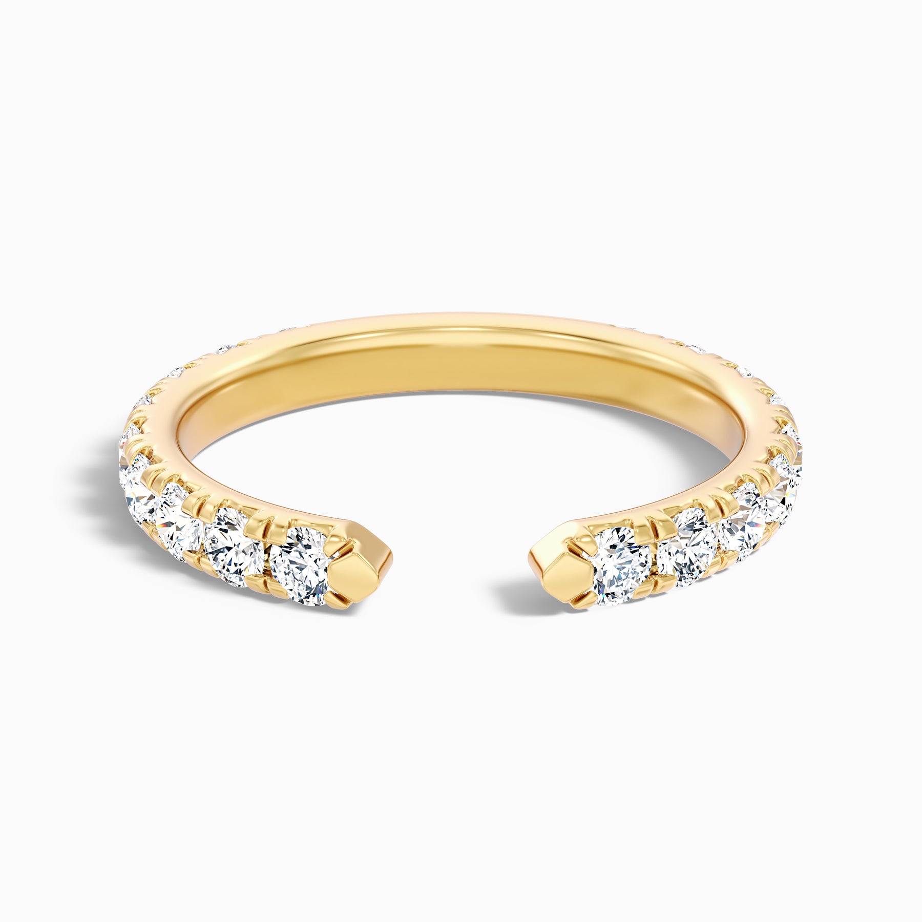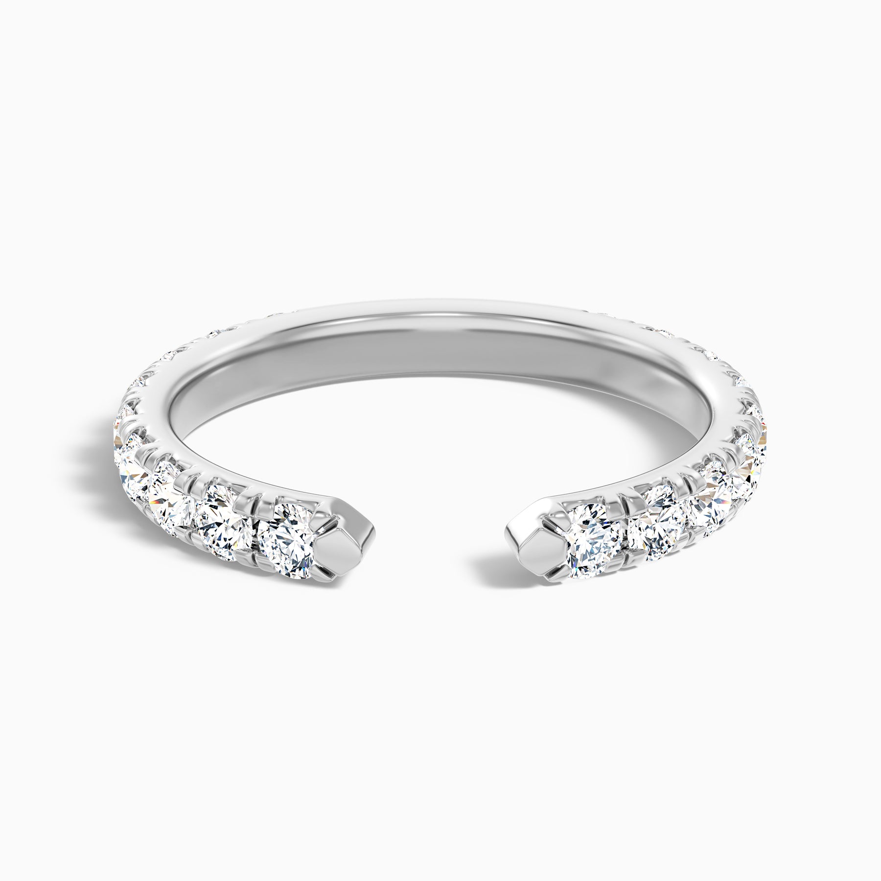 The Tanith Round Cut Lab Grown Diamond Open Wedding Band features 16 round lab-grown diamonds set in a French pavé design along a modern open band. With its 2.7 mm width and rhodium-plated finish, it offers a contemporary twist on timeless elegance. Perfect as a wedding band, anniversary ring, or stackable piece, this ethically crafted band delivers sparkling brilliance and lasting style.