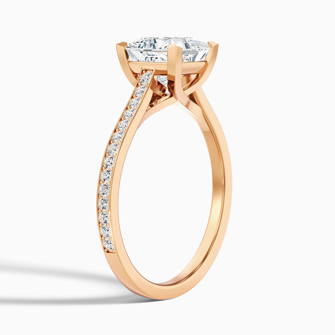 Tia 3.5 Carat Princess Cut Side Stone Pave Moissanite Engagement Ring in 14k Rose Gold