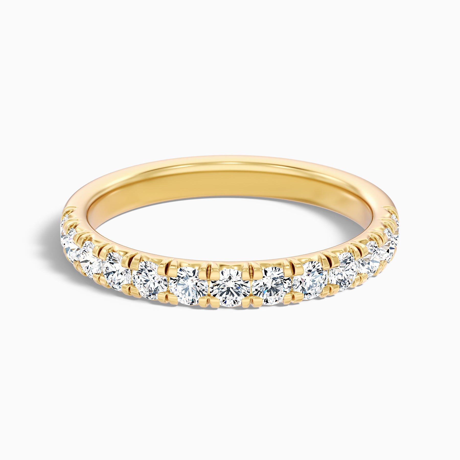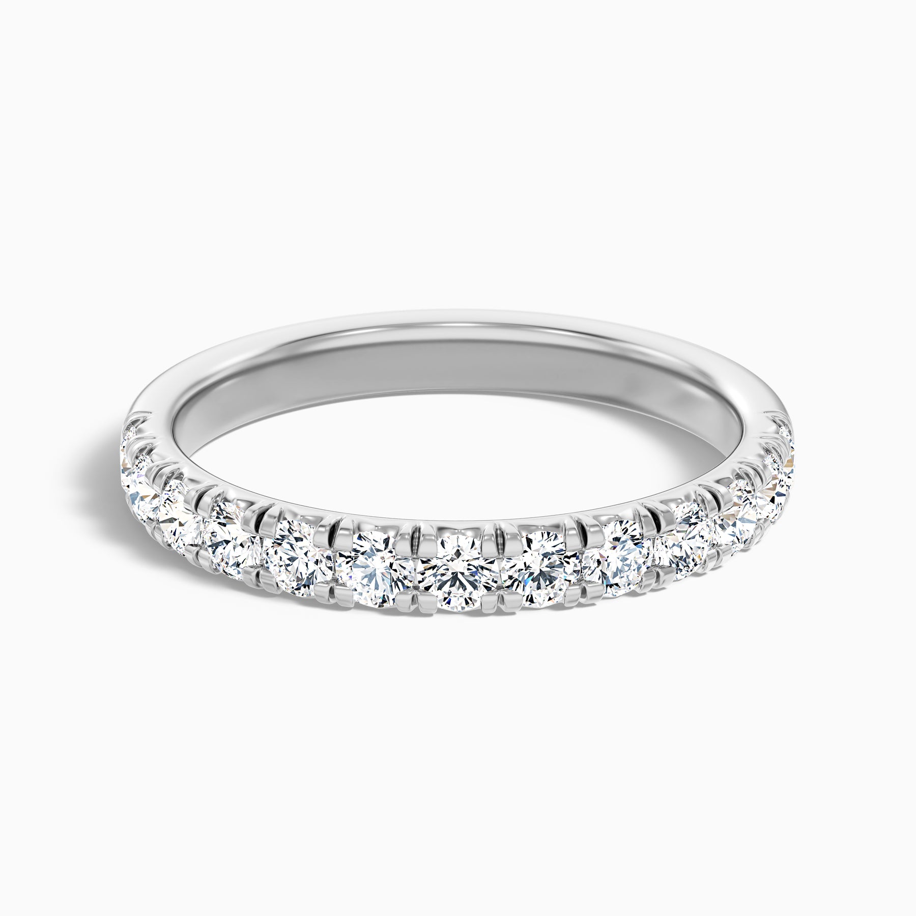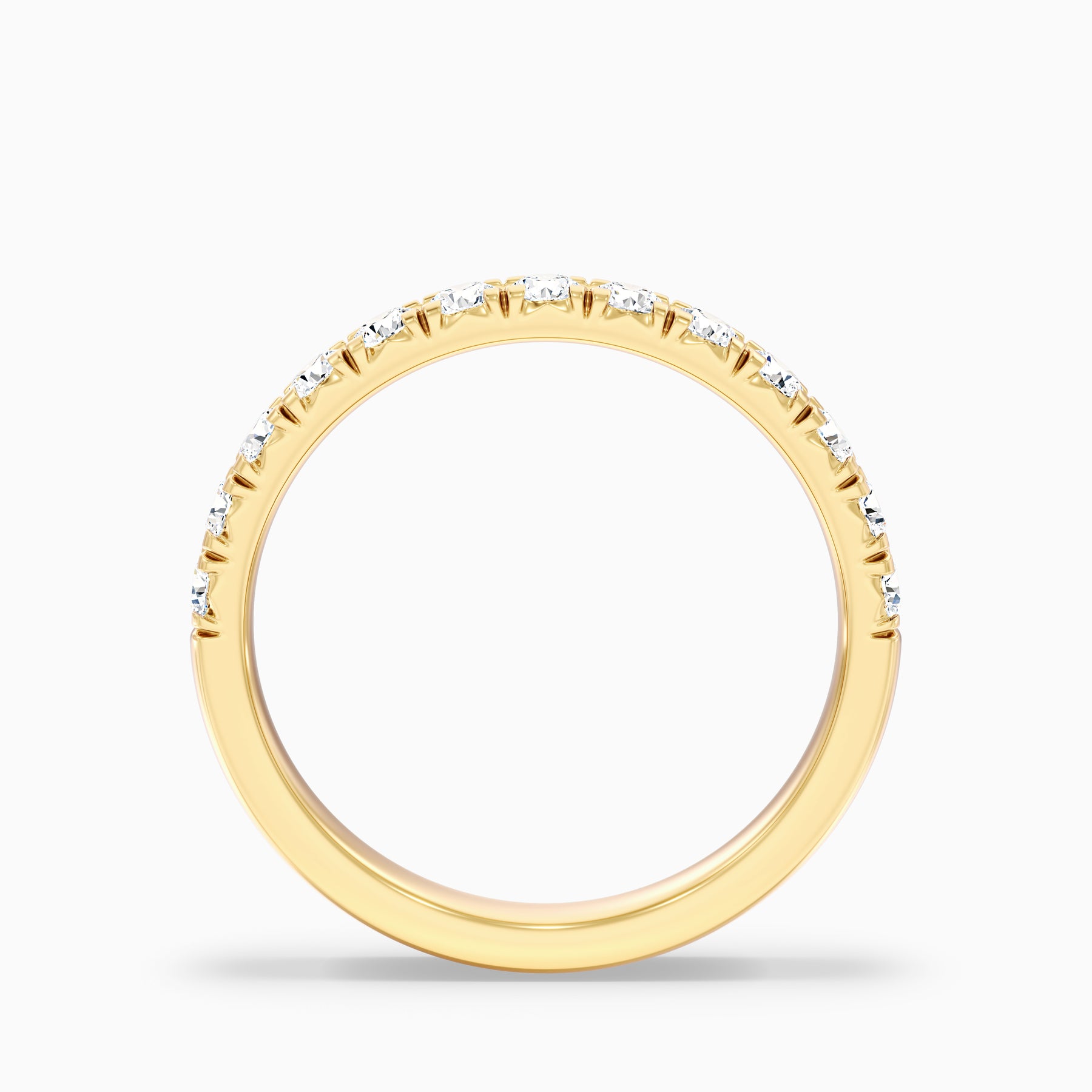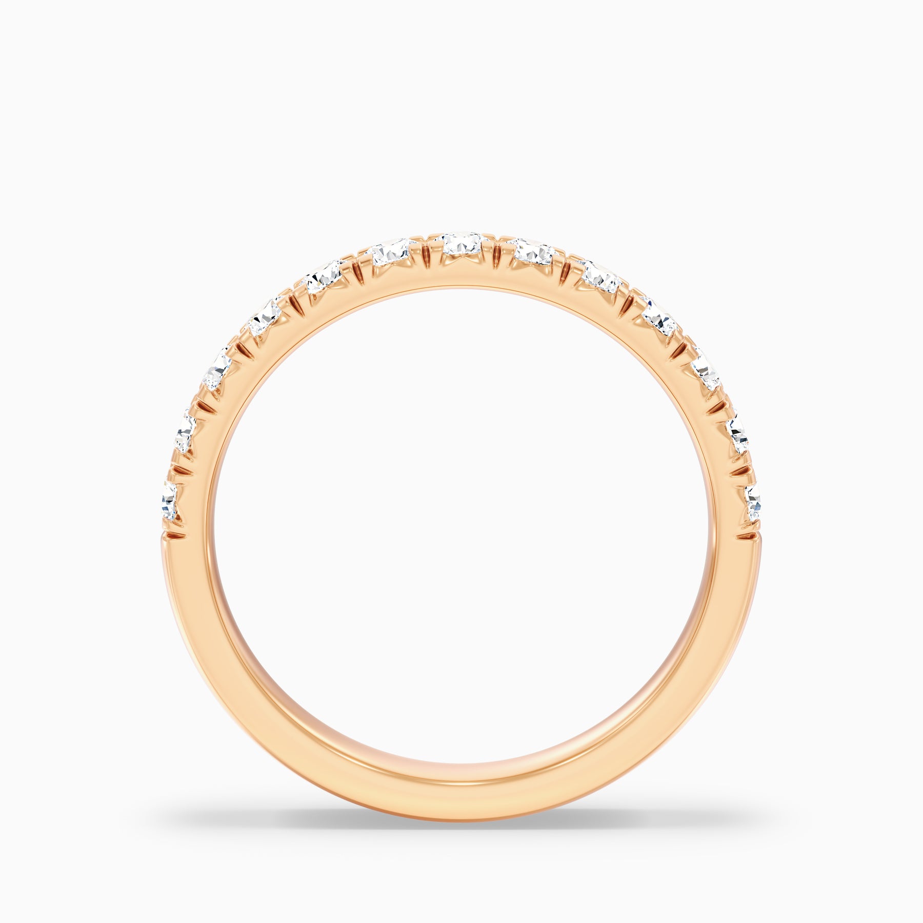 The Victoria Round Cut Half Eternity Lab Grown Diamond Wedding Band features round-cut diamonds in a French pavé setting, available in four sizes ranging from 2.3 mm to 3.5 mm. Each band offers brilliant sparkle and elegant design, perfect as a wedding band, anniversary ring, or stackable piece, combining ethical craftsmanship with timeless style.