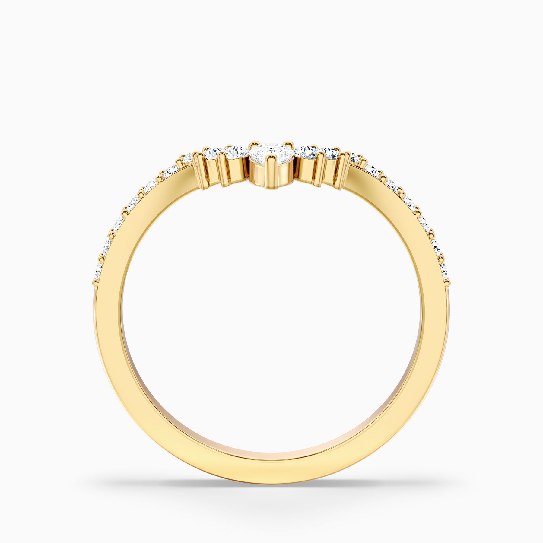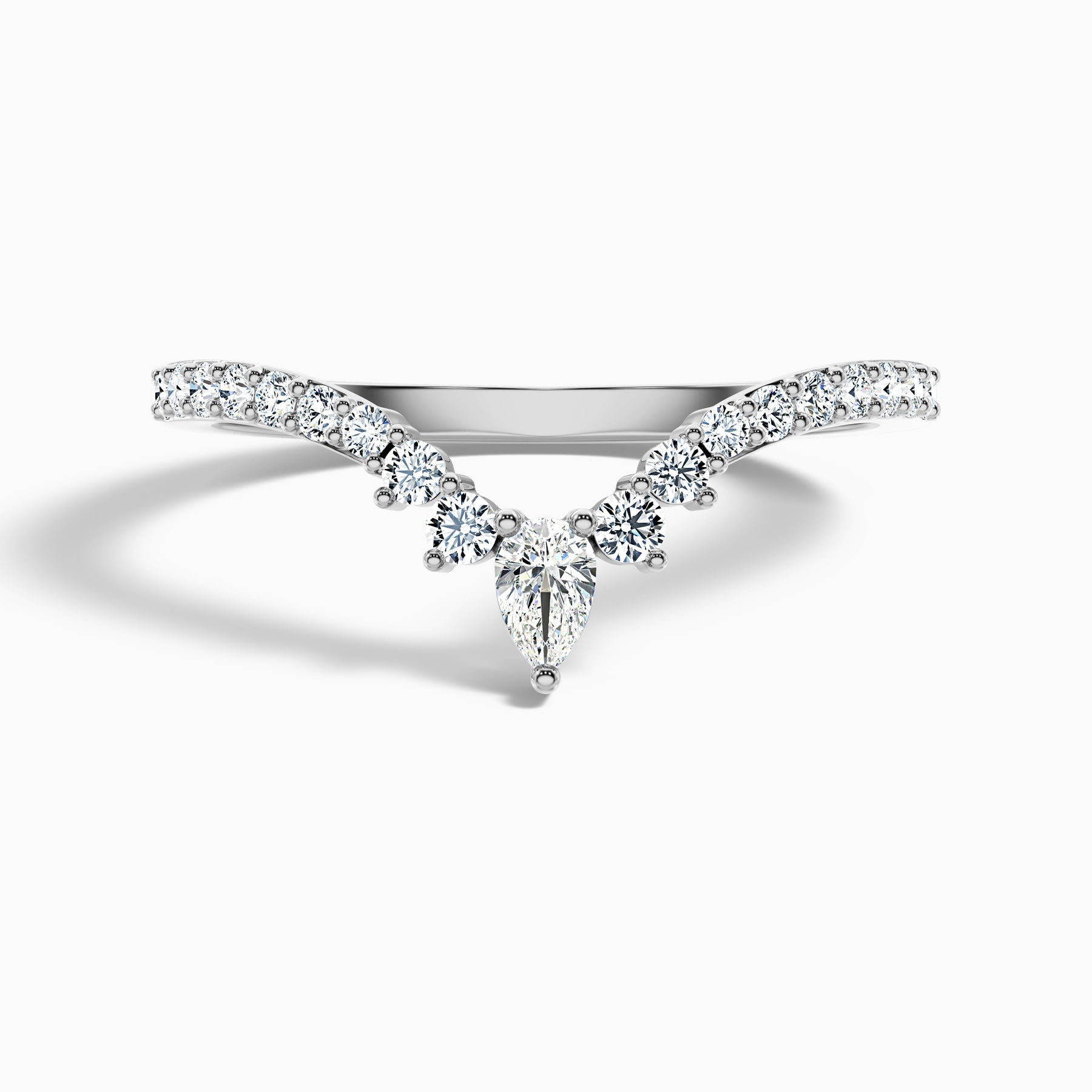 The Winona Pear and Round Cut Crescent Shaped Lab Grown Diamond Wedding Band features 20 round diamonds accented with a single pear-cut stone for a unique twist. With a slim 1.8 mm rhodium-plated band and shared prong setting, this design blends classic sparkle with modern elegance. Perfect as a wedding band, anniversary ring, or stackable piece, it delivers timeless brilliance with sustainable craftsmanship.