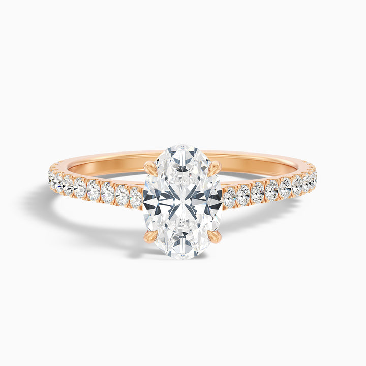 Zoe 1 Carat Oval Side Stone Pave Lab Grown Engagement Ring in 14k White Gold