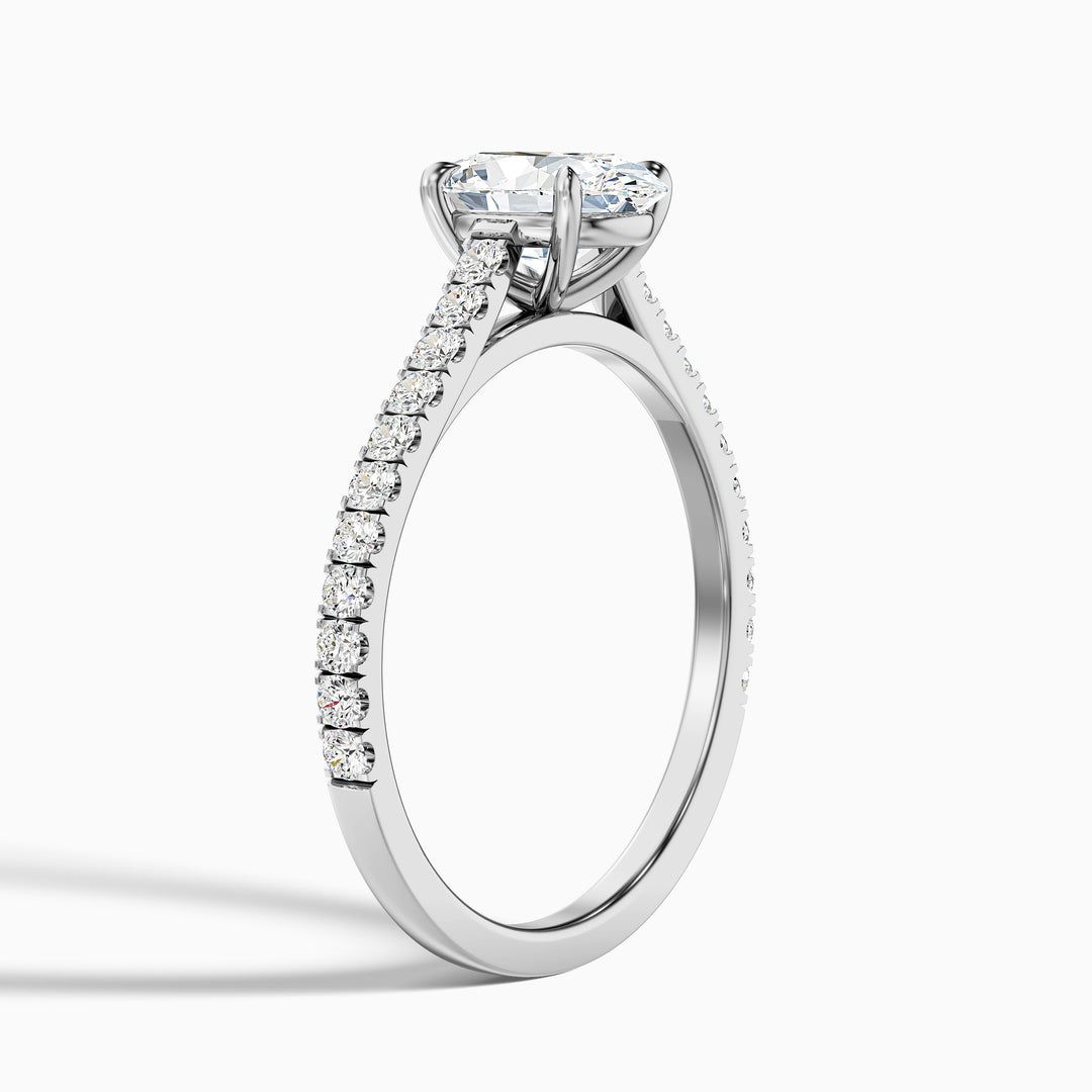 Make your love shine with the zoe 4 carat oval side stone pave lab grown engagement ring. It features a stunning 4 carat lab grown diamond set in a side stone design. Crafted from 18k rose gold, the ring is both stylish and strong, ensuring it lasts a lifetime.